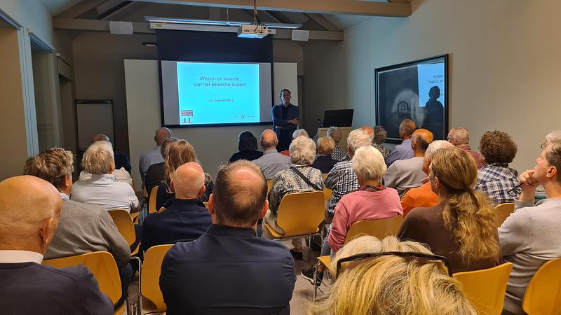Voor deze derde kennislezing was prof. dr. Jos Swanenberg uitgenodigd. Specialist in onder meer dialect. Niet uit de Bossche hoek, of toch bijna, maar vanuit Middelrode waar hij opgroeide. Hij is hoogleraar aan de universiteit van Tilburg en taalvariatie-onderzoeker aan het Meertens Instituut van de Koninklijke Nederlandse Akademie van Wetenschappen. Tot 2022 werkte hij bij Erfgoed Brabant. ‘Unne hillen muil vol’ om maar eens in het dialect af te trappen.