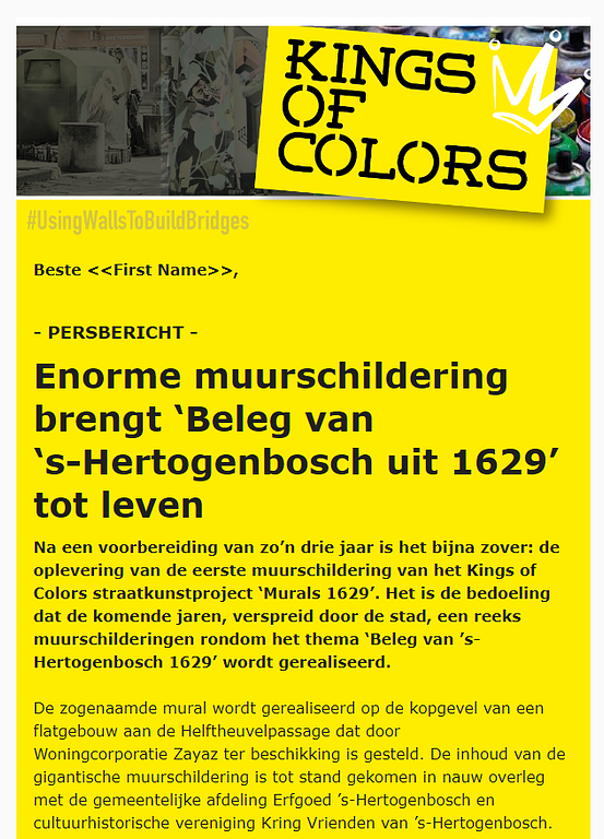 Deze week verschenen er allerlei mooie berichten over de 'mural' (levensgrote muurschildering) bij de Bossche Helftheuvelpassage. We zijn er trots op dat we met de Kring meegedacht hebben over de uitwerking van dit thema. De werkgroep Vestingwerken is binnen de Kring de autoriteit op het gebied van de Tachtigjarige oorlog en het Beleg van 1629.