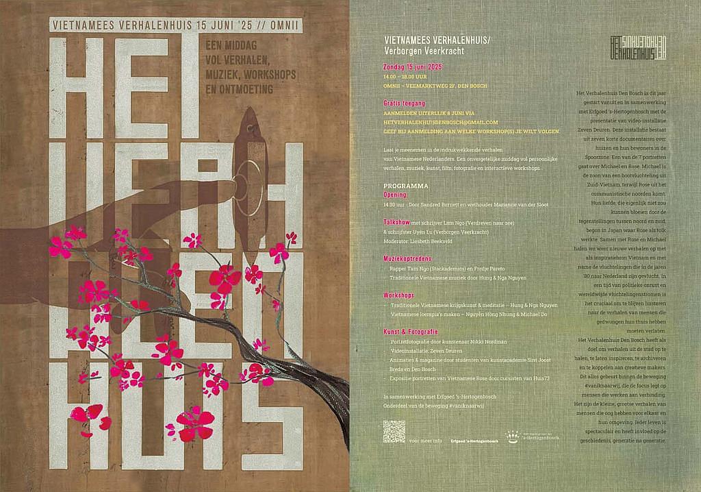 's-Hertogenbosch, 15 juni 2025 – Het Verhalenhuis Den Bosch presenteert een unieke en onvergetelijke middag waarin Vietnamese Nederlanders hun persoonlijke en culturele verhalen delen. Op zondag 15 juni wordt locatie OMNII (Veemarktweg 2F, Den Bosch) omgetoverd tot een levendig Vietnamees Verhalenhuis met workshops, muziek, film, fotografie en inspirerende gesprekken. Het programma start om 14.30 uur met een welkom door Sandred Burnett en wethouder Marianne van der Sloot.