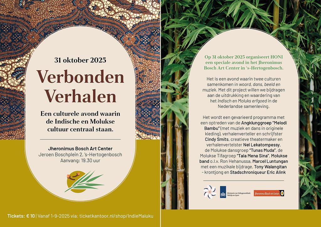 Het is een avond waarin twee culturen samenkomen in woord, dans, beeld en muziek. Met dit project willen we bijdragen aan de uitdrukking en waardering van het Indisch en Moluks erfgoed in de Nederlandse samenleving.